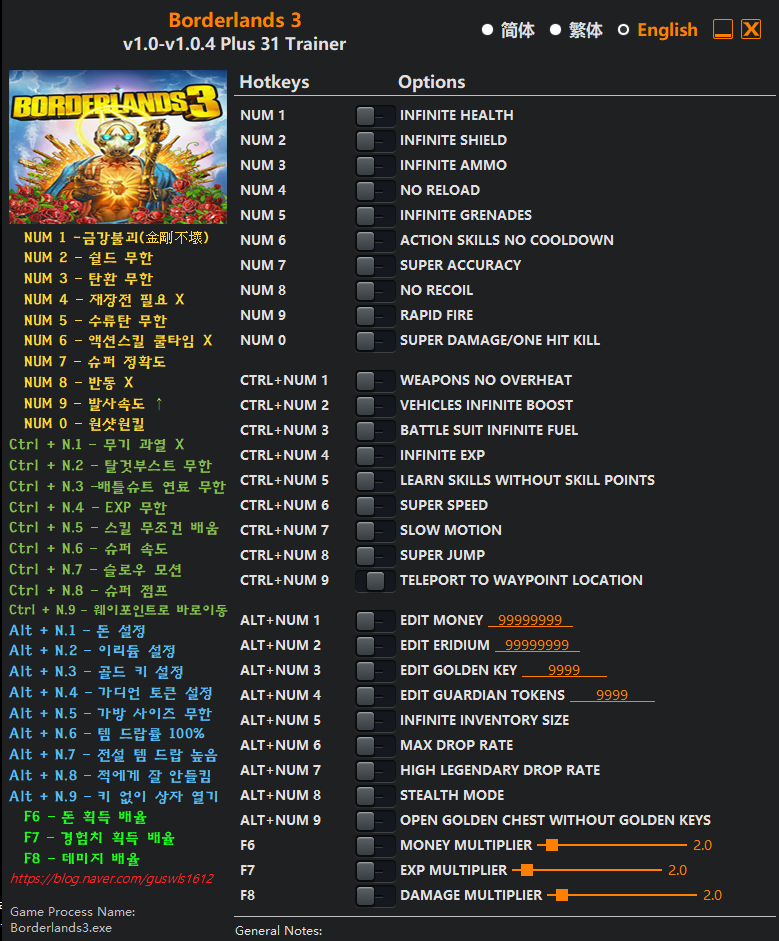 보더랜드3 1.0 - 1.0.4버전 한글 트레이너