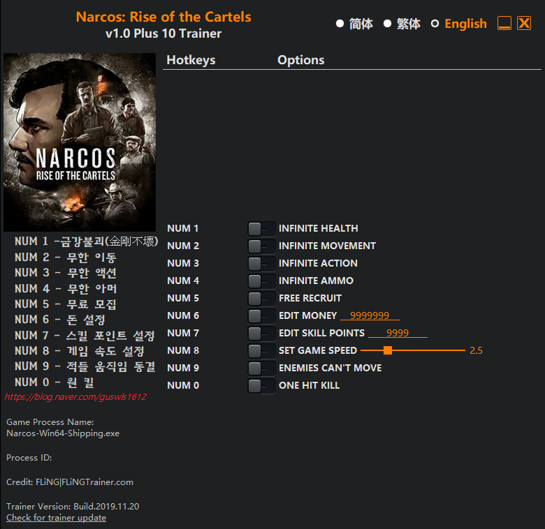 나르코스 : 라이즈 오브 더 카르텔 1.0버전 한글 트레이너