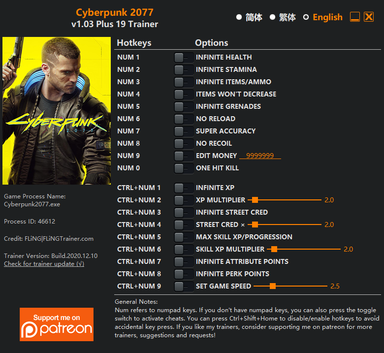 19 Options · Game Version: v1.03+ · Last Updated: 2020.12.10