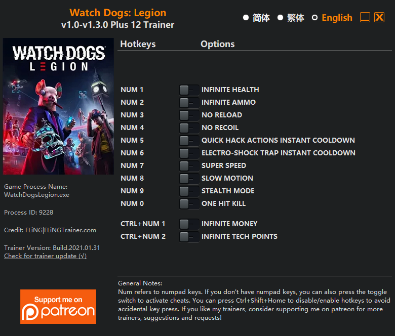 [트레이너] 와치독스 리전 1.0 - 1.3.0 버전용