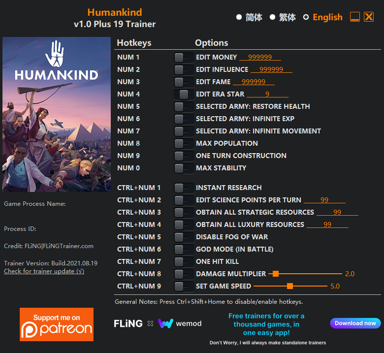 19 Options · Game Version: 1.03v - 1.06v Last Updated: 2020.08.19