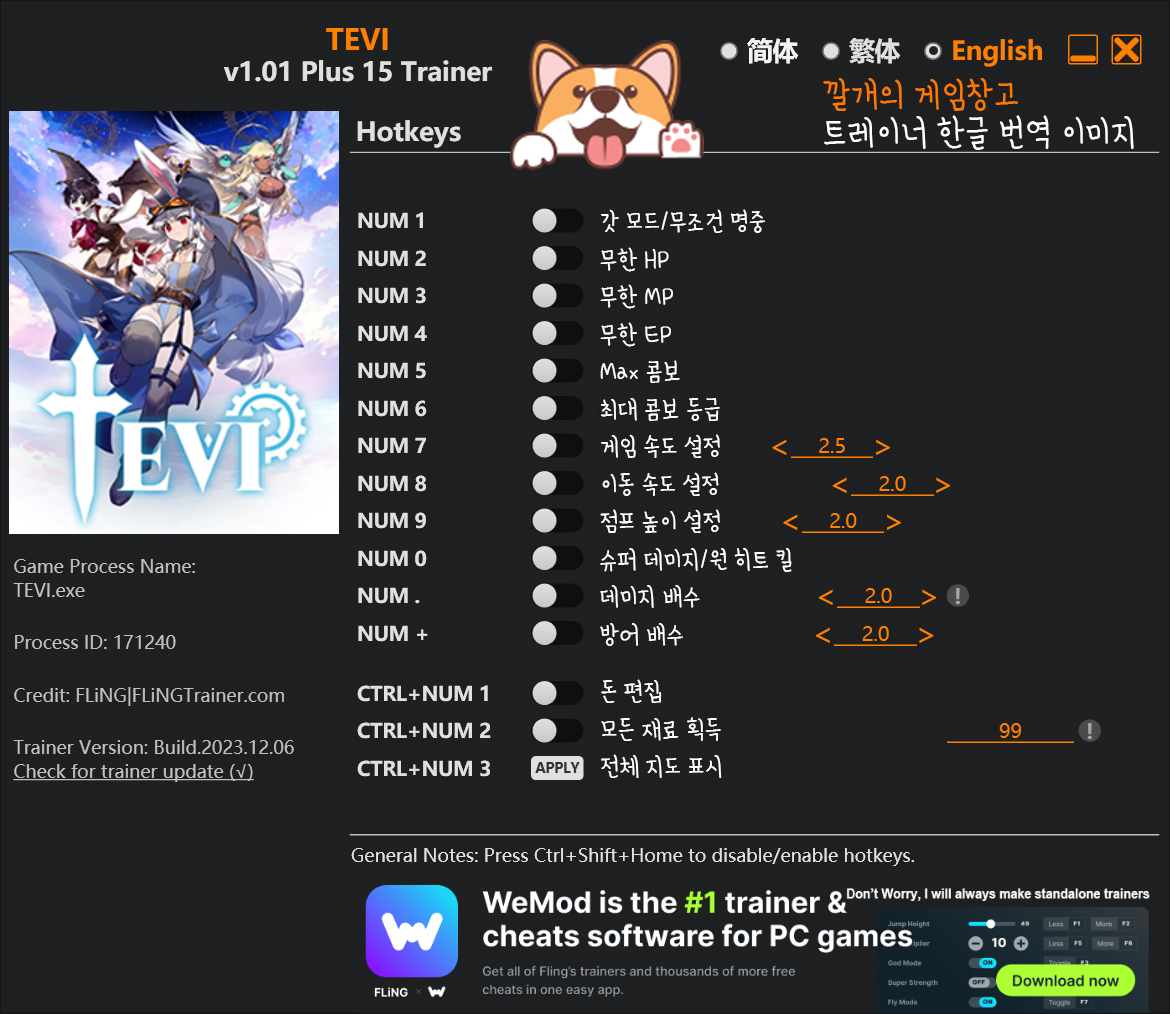 | 사용방법 1. 게임 실행 2. ALT+TAP 으로 윈도우 화면으로 나온 뒤 트레이너 실행 3. 적용할 옵션 클릭 또는 키보드 핫키로 설정 |