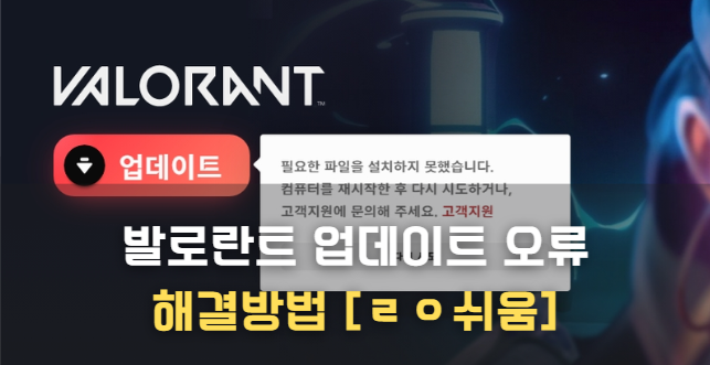 [발로란트] 업데이트 오류 에러 해결방법 : 필요한 파일을 설치하지 못했습니다. 컴퓨터를 재시작한 후 다시 시도하거나, 고객지원에 문의해 주세요. 필요한 파일을 설치하지 못했습니다. 컴퓨터를 재시작한 후 다시 시도하거나, 고객지원에 문의해 주세요. 해당 오류는 라이엇 클라이언트 실행시 비인가 프로그램 [핵이나 헬퍼 같은] 안티 프로그램인 뱅가드 오류 에러 중 하나입니다. 우리의 멋진 라이엇팀은 핵을 잡는답시고 뱅가드가 실행 되어있으면 업데이트가 안되는 오류를 발생되게끔 해두었죠! 해결방법은 굉장히 간단합니다. 따라해주세요! 1. 라이엇 클라이언트 실행 후 첫번째 클라이언트 화면에서 로그인 라이엇 클라이언트 실행 후 첫번째 화면에서는 평소대로 로그인 해줍니다. 2. 두번째 클라이언트 화면에서 뱅가드 종료 후 업데이트 버튼 클릭. 평소대로 로그인 하게되면 두번째 클라이언트 화면이 뜰텐데 이 화면이 뜨면윈도우 하단 우측 뱅가드 오른쪽 클릭 -> .. 카테고리 없음 2025.03.12